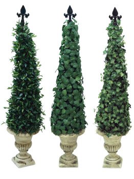 Item #46655Features three different style artificial potted ivy, cone trees with Fleur De Lis decorative tree topper